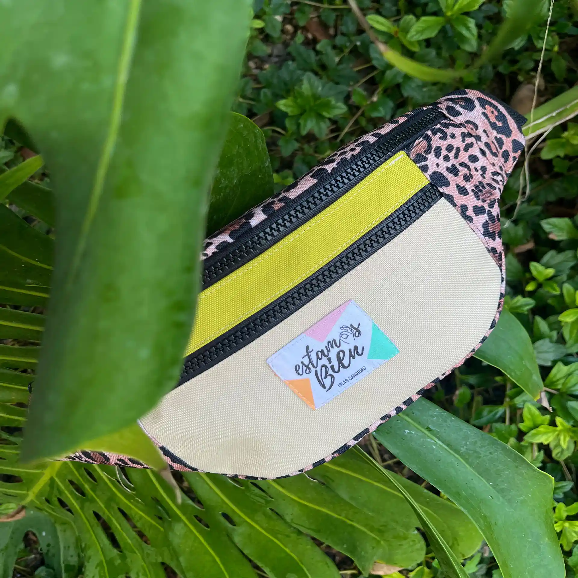 COLECCIÓN SALVAJE. Riñonera de doble bolsillo, tejido exterior impermeable estampado en Animal Print con un toque de color